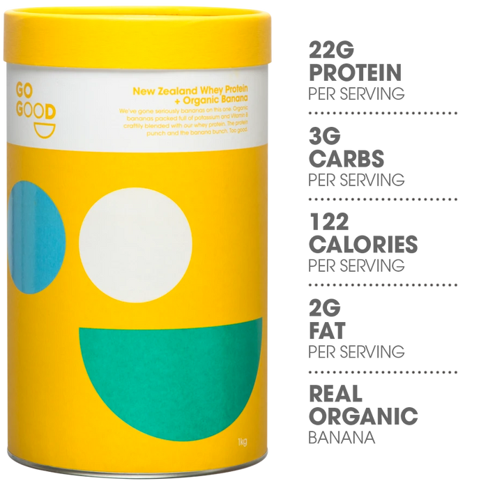 Made with world leading New Zealand whey protein and fortified with real, organic banana to flavour. Go Good organic banana protein is a nutritionally complete and delicious tasting protein source.