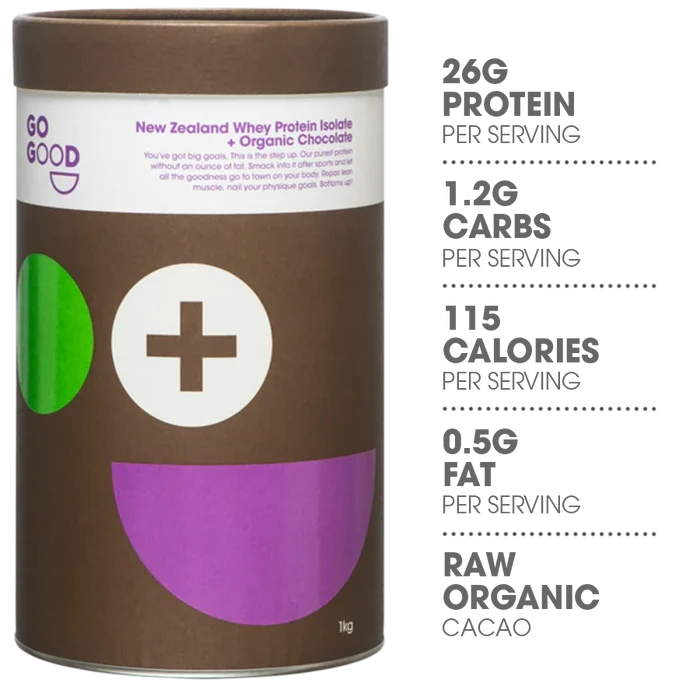 A refined form of whey protein powder, micro-filtration at low temperature removes virtually all carbohydrates, fats and lactose. The result is the highest protein purity of any whey protein available worldwide. Boasting a complete amino acid profile Go Good whey isolate is packed full of macronutrients for optimal bioavailability and digestibility.